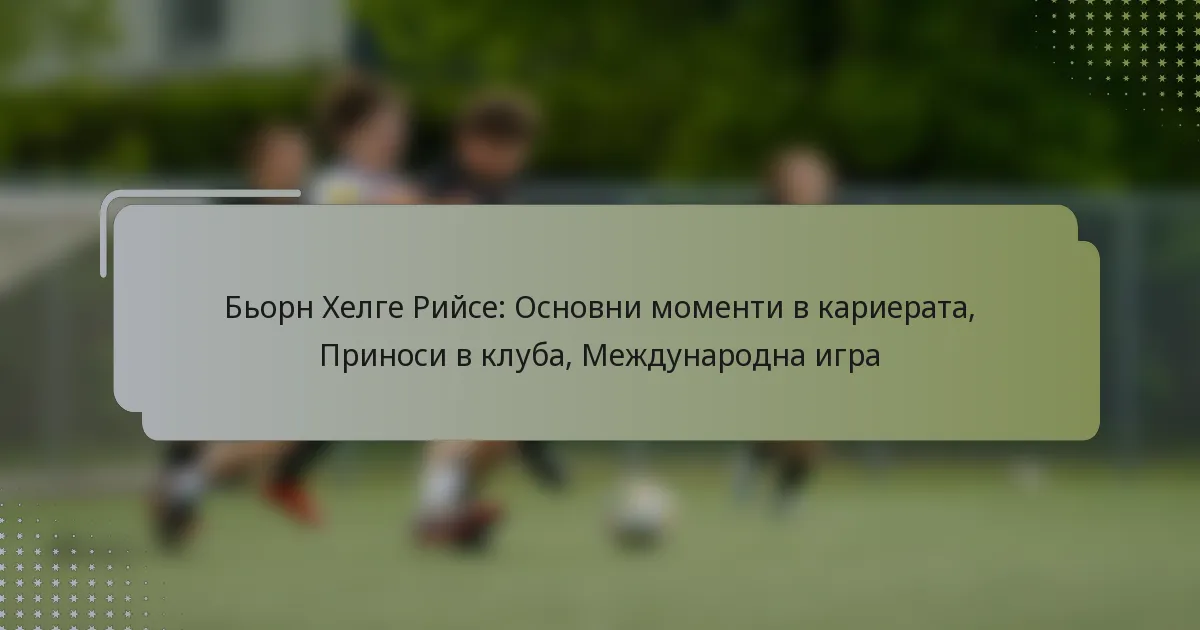 Бьорн Хелге Рийсе е известен със своите значими приноси както в клубния, така и в международния футбол, демонстрирайки своите умения като полузащитник през цялата си кариера. Неговите постижения включват значителни награди, запомнящи се представяния и трайно наследство в норвежкия футбол.