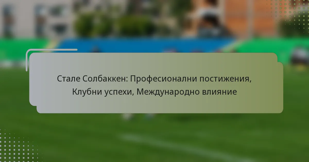 Стаале Солбаккен има забележителна кариера както като играч, така и като треньор, отбелязана с важни постижения в клубния футбол и международните състезания. Неговото влияние надхвърля трофеите, оформяйки клубната култура и развитието на играчите, като същевременно оказва значително въздействие върху националния отбор на Норвегия и инициативите за развитие на младежта.
